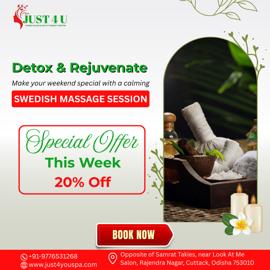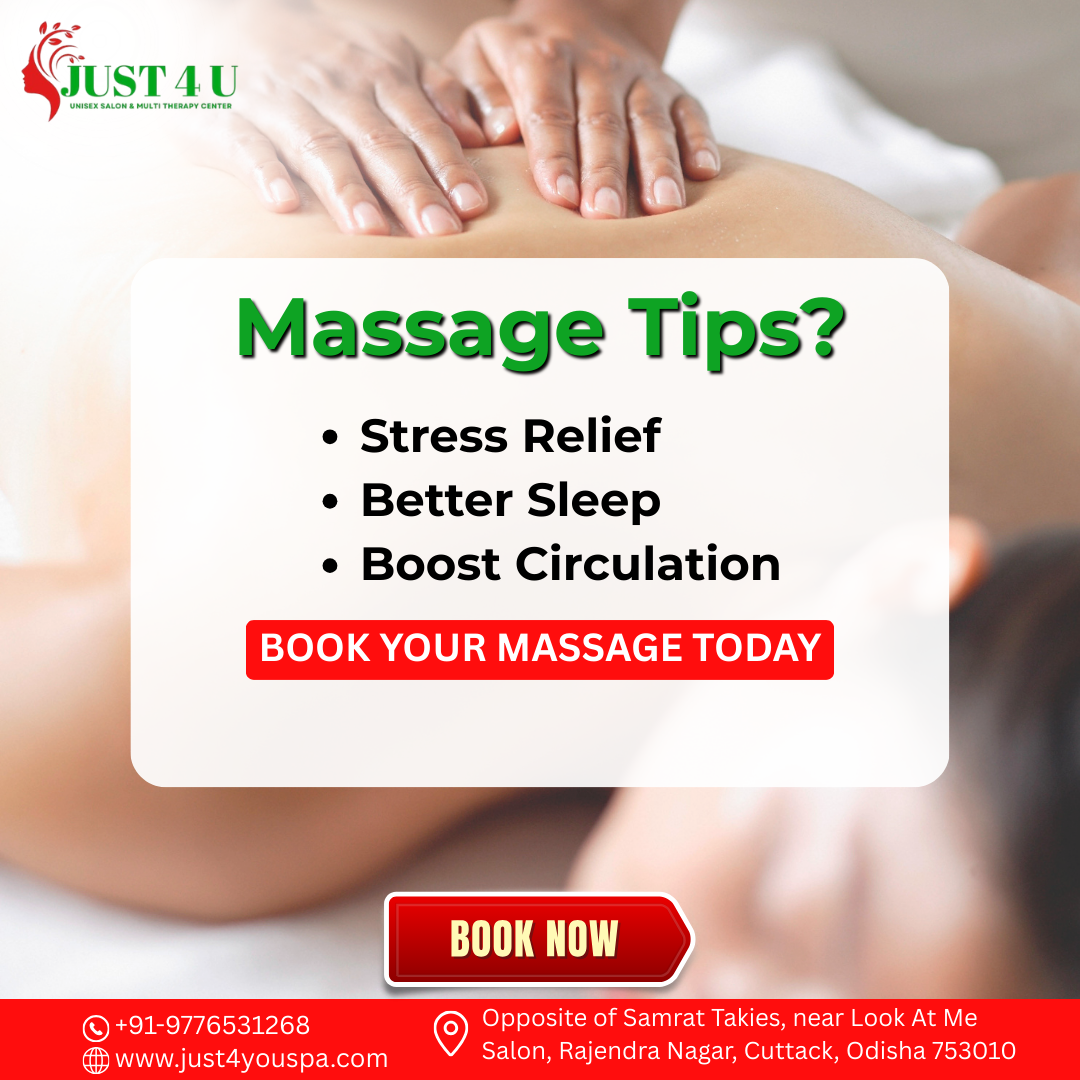 Just 4 You Spa offers premium massage and unisex salon services in Cuttack, Odisha. Experience relaxation, expert care, and top-notch grooming. Visit us for the ultimate rejuvenation and self-care experience.